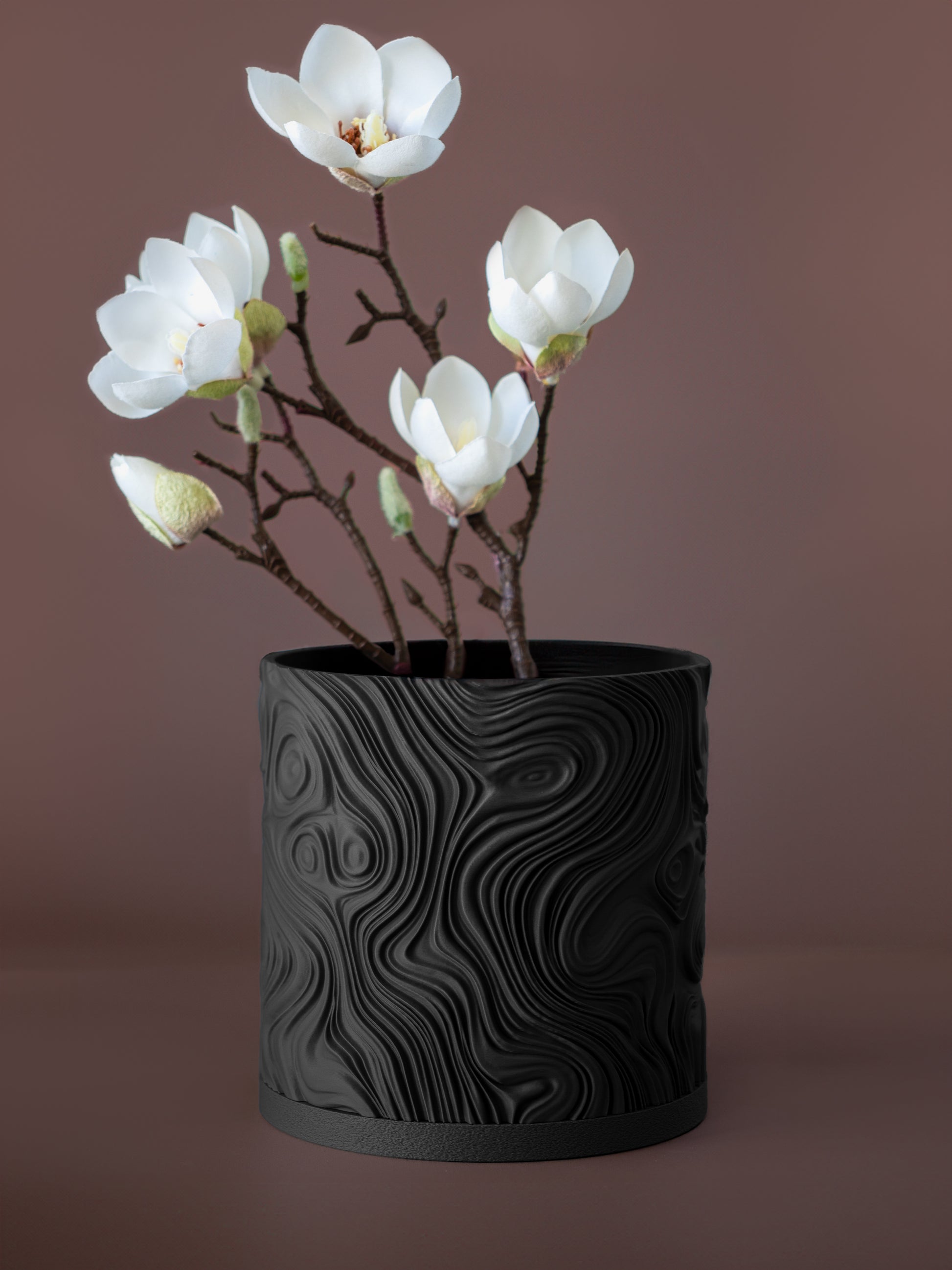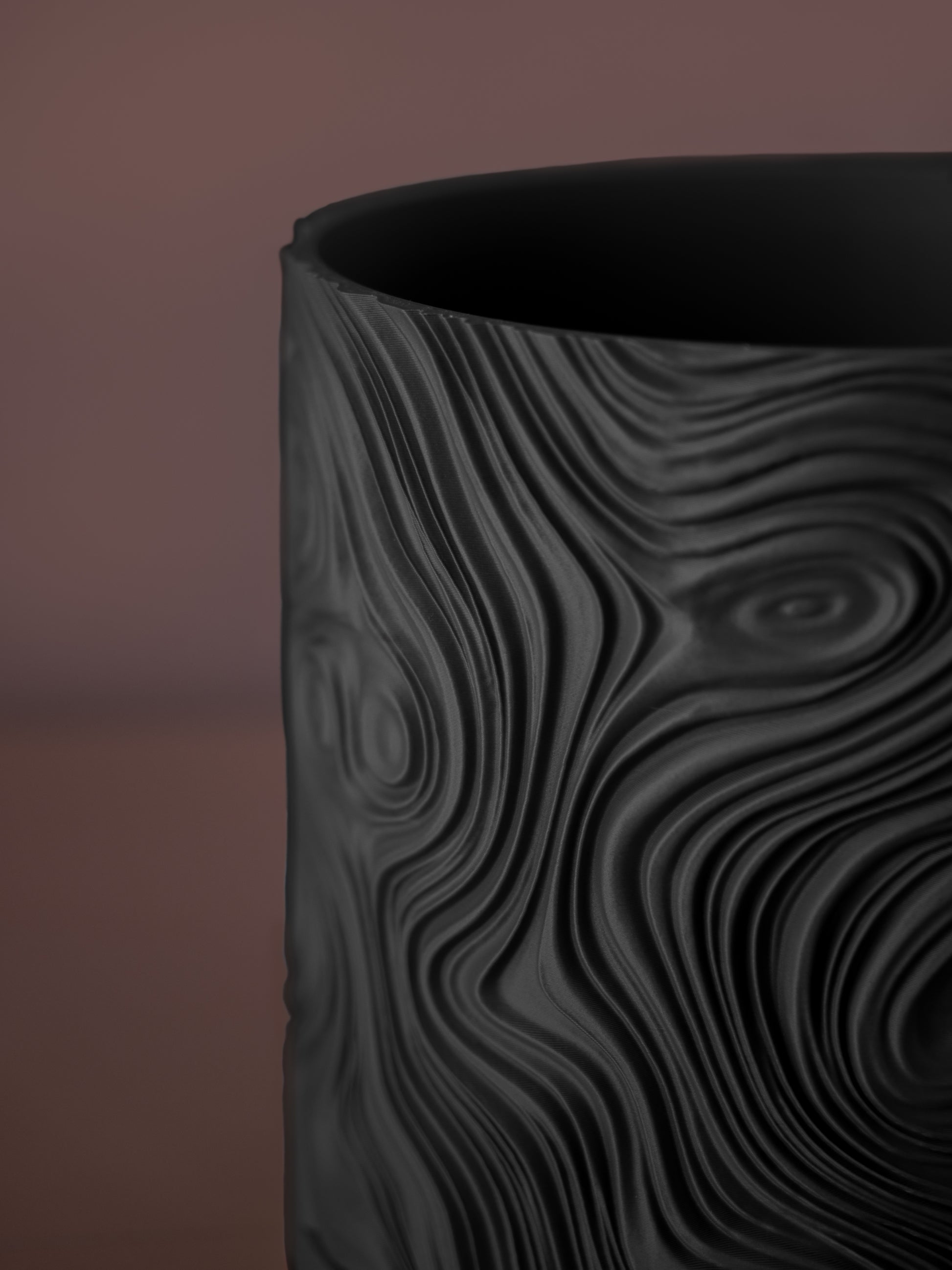 Cada maceta se imprime capa por capa, creando una textura única y un producto con mínimos residuos.