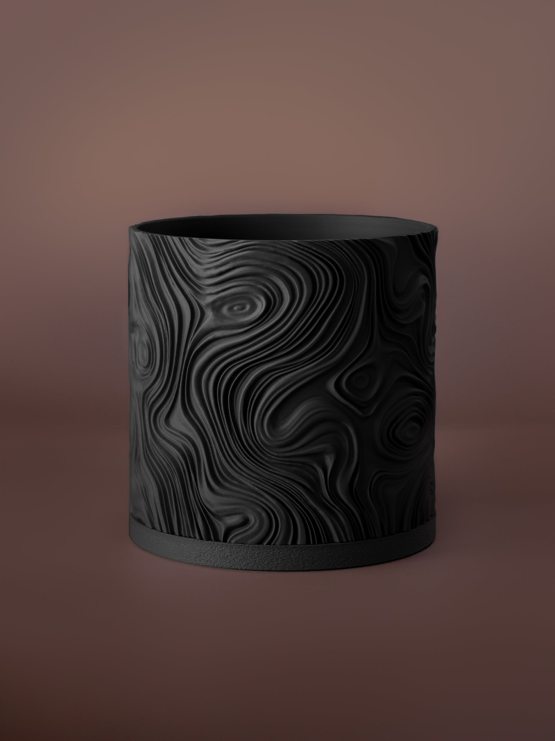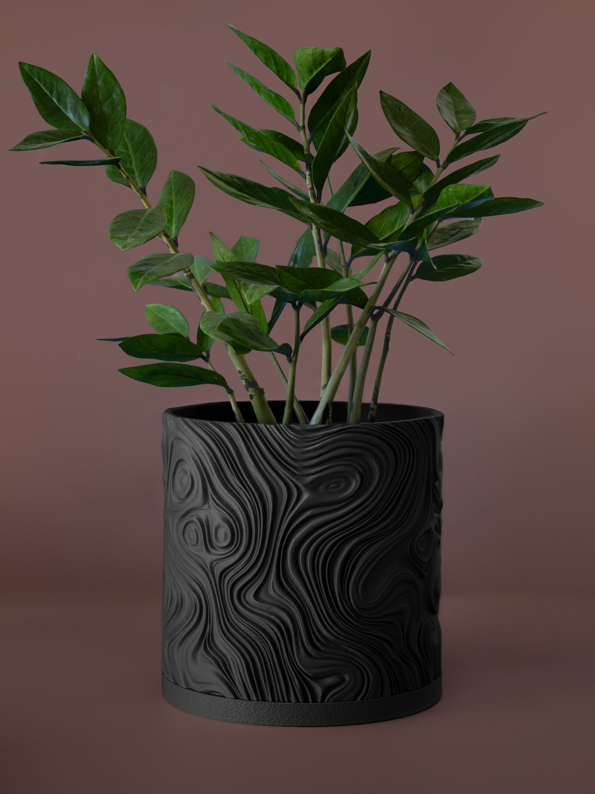 Su acabado mate profundo resalta la textura orgánica de ondas, creando un contraste perfecto con plantas de un verde vibrante.