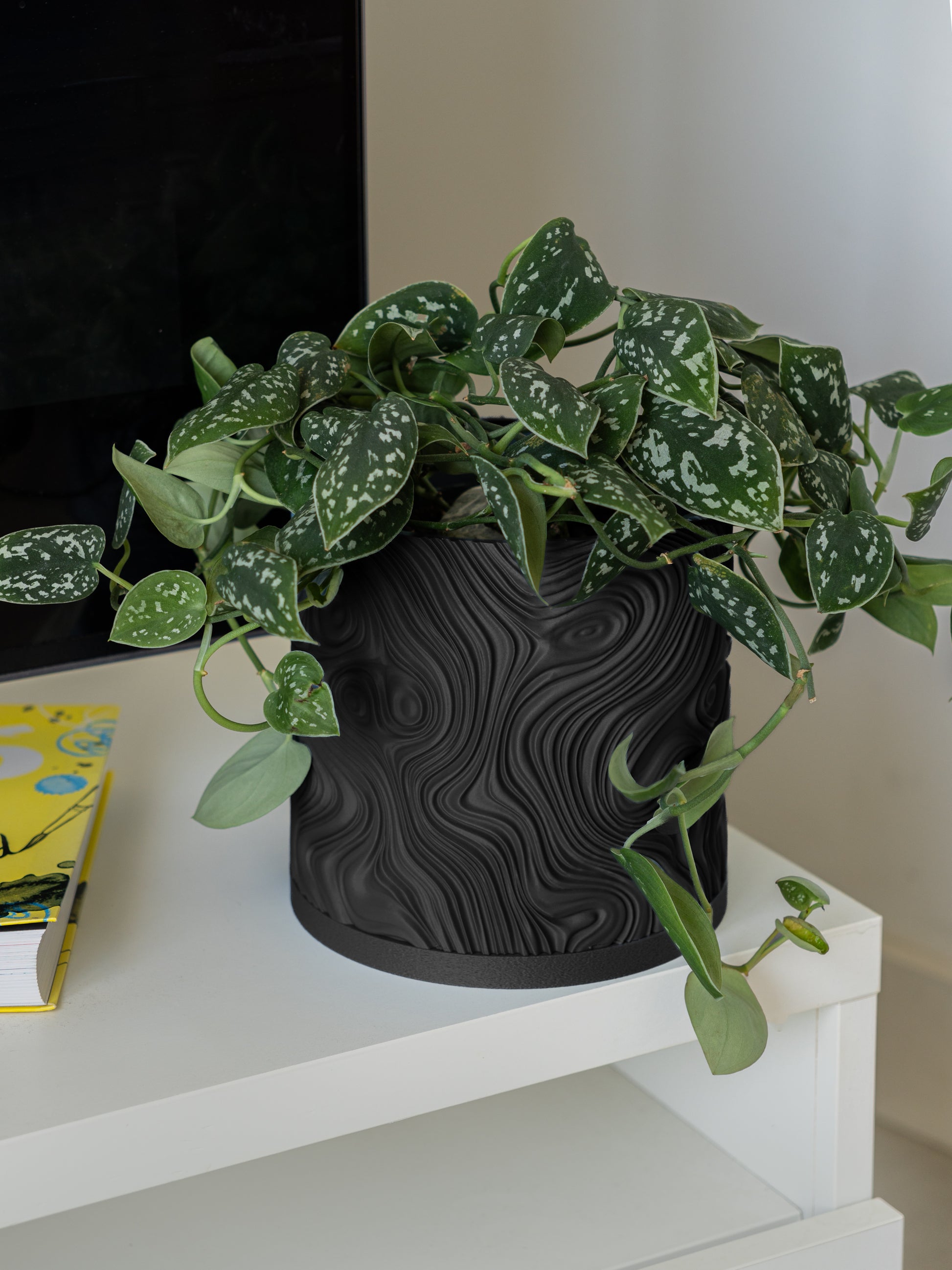 La edición en negro de nuestra Flow Planter añade un acento arquitectónico y audaz a cualquier espacio.