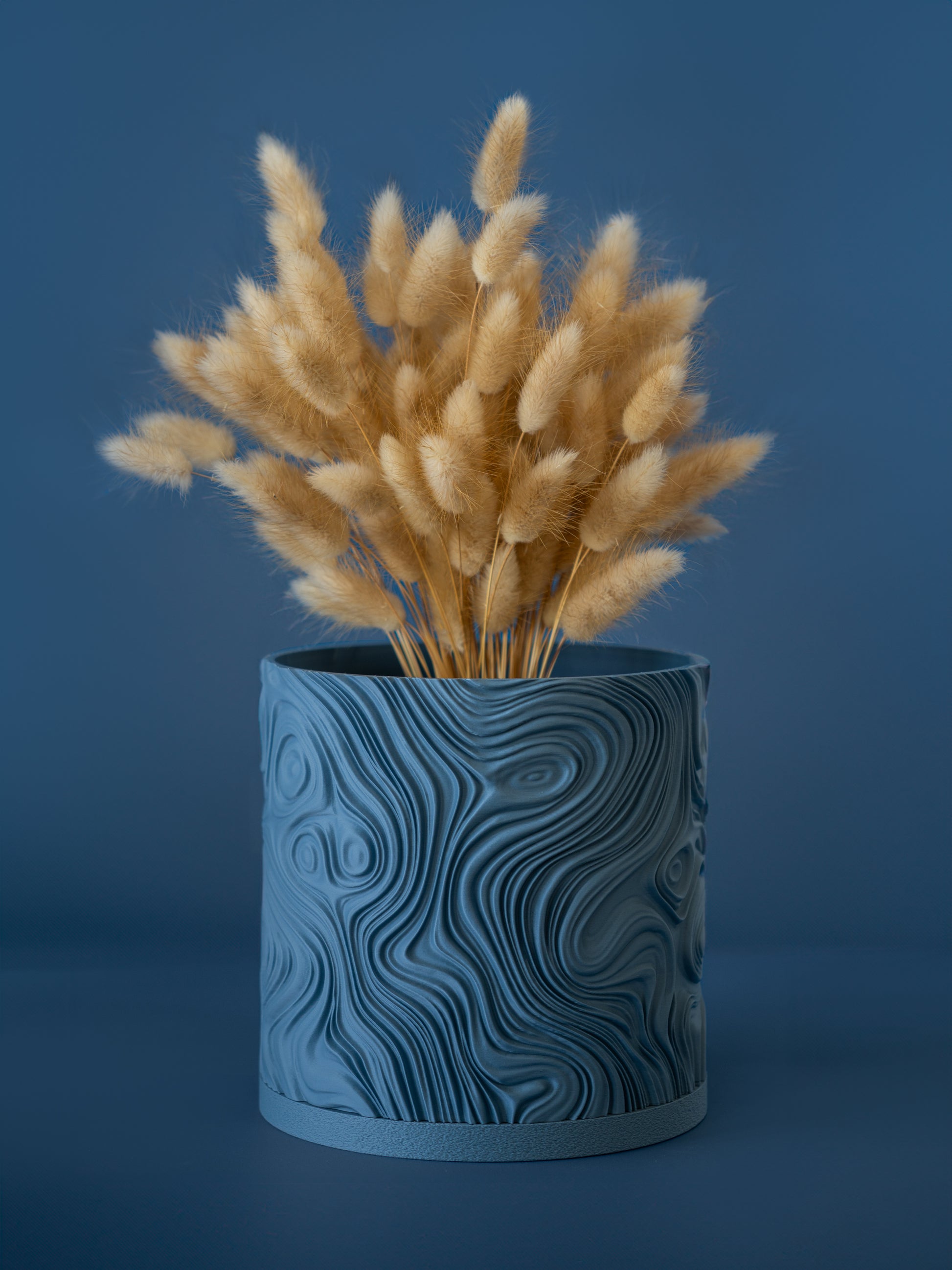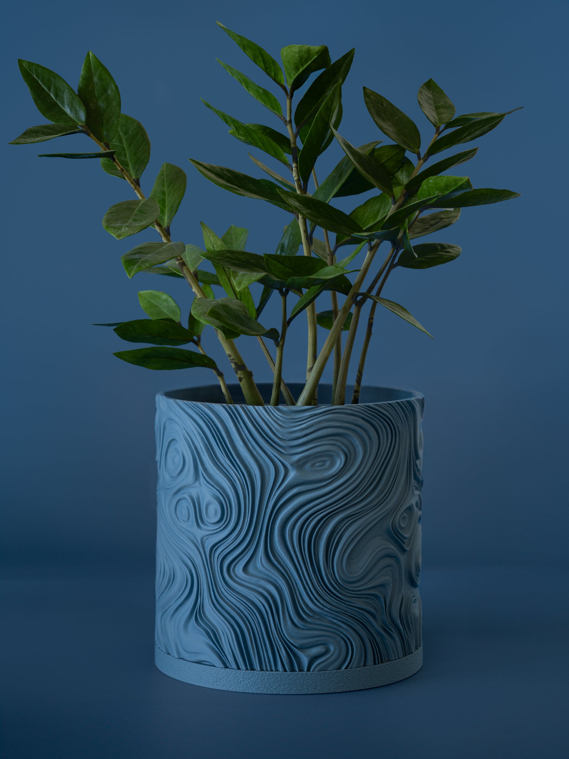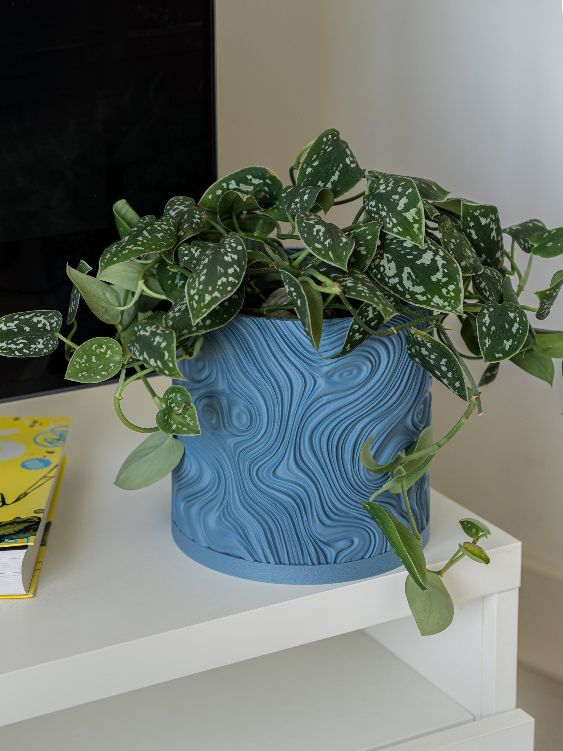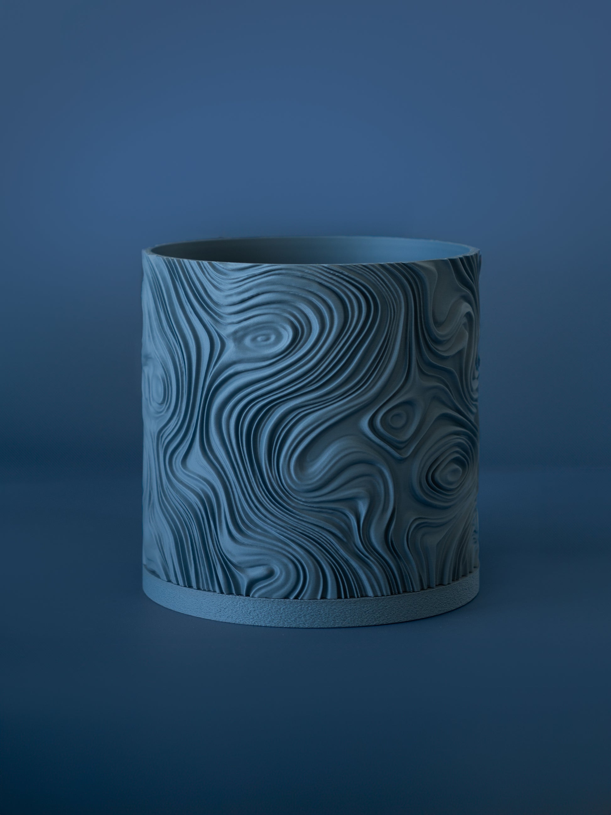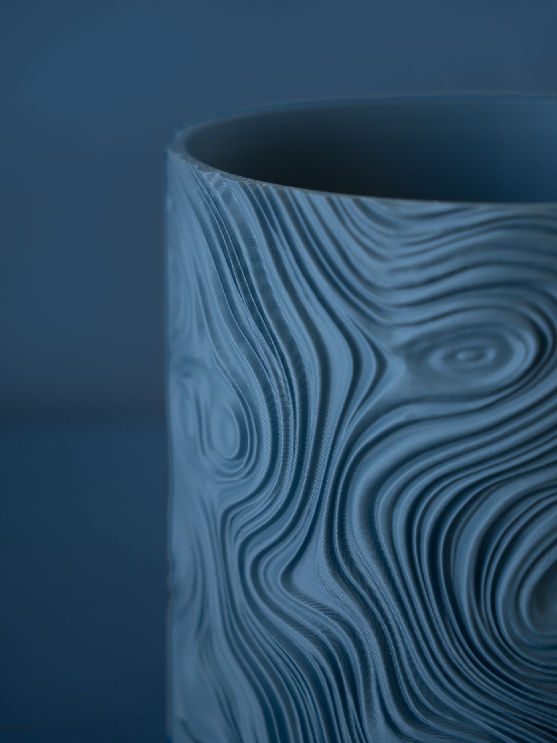 Cada maceta se imprime capa por capa, creando una textura única y un producto con mínimos residuos.